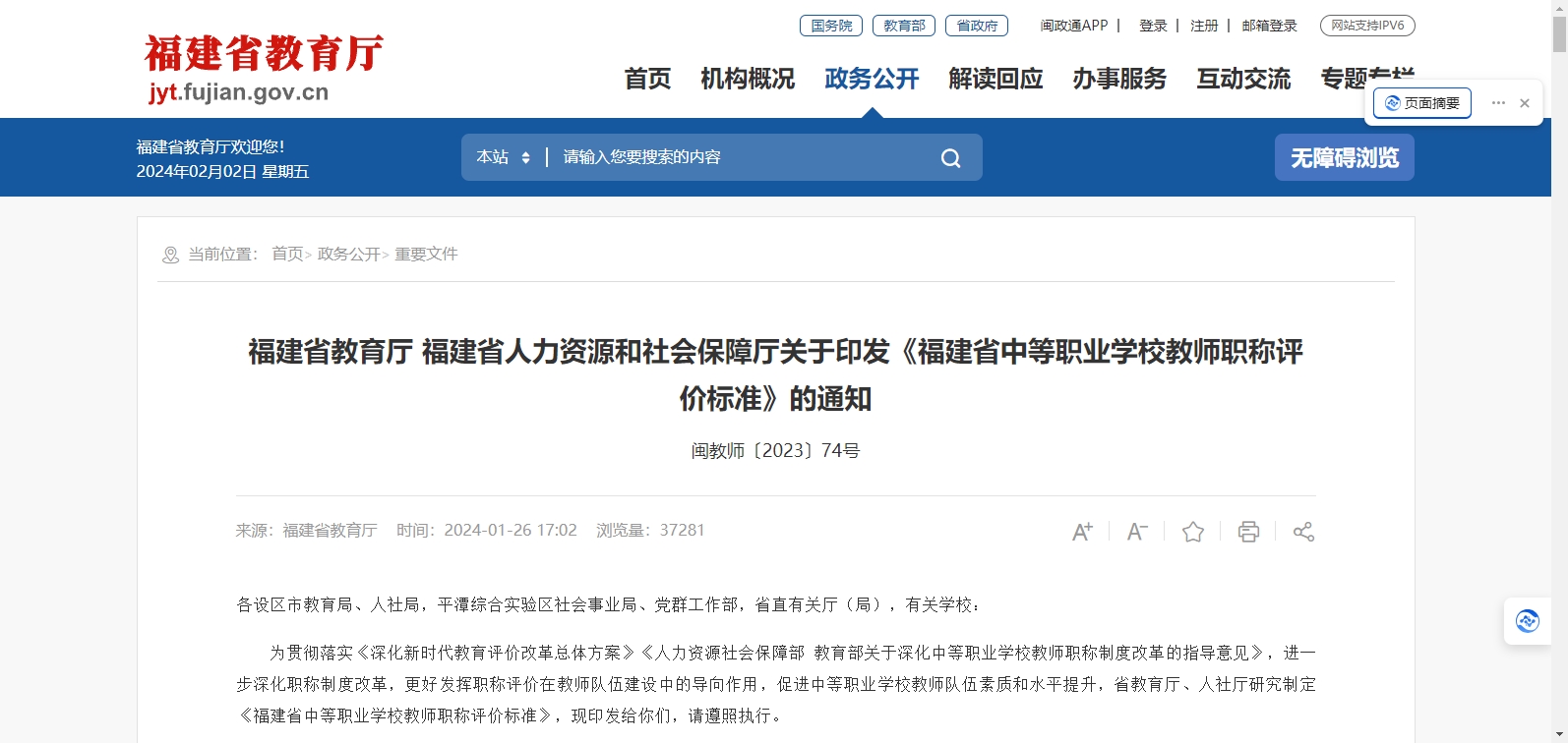 為貫徹落實《深化新時代教育評價改革總體方案》《人力資源社會保障部 教育部關(guān)于深化中等職業(yè)學(xué)校教師職稱制度改革的指導(dǎo)意見》,進一步深化職稱制度改革,更好發(fā)揮職稱評價在教師隊伍建設(shè)中的導(dǎo)向作用,促進中等職業(yè)學(xué)校教師隊伍素質(zhì)和水平提升,省教育廳、人社廳研究制定《福建省中等職業(yè)學(xué)校教師職稱評價標(biāo)準(zhǔn)》,現(xiàn)印發(fā)給你們,請遵照執(zhí)行。