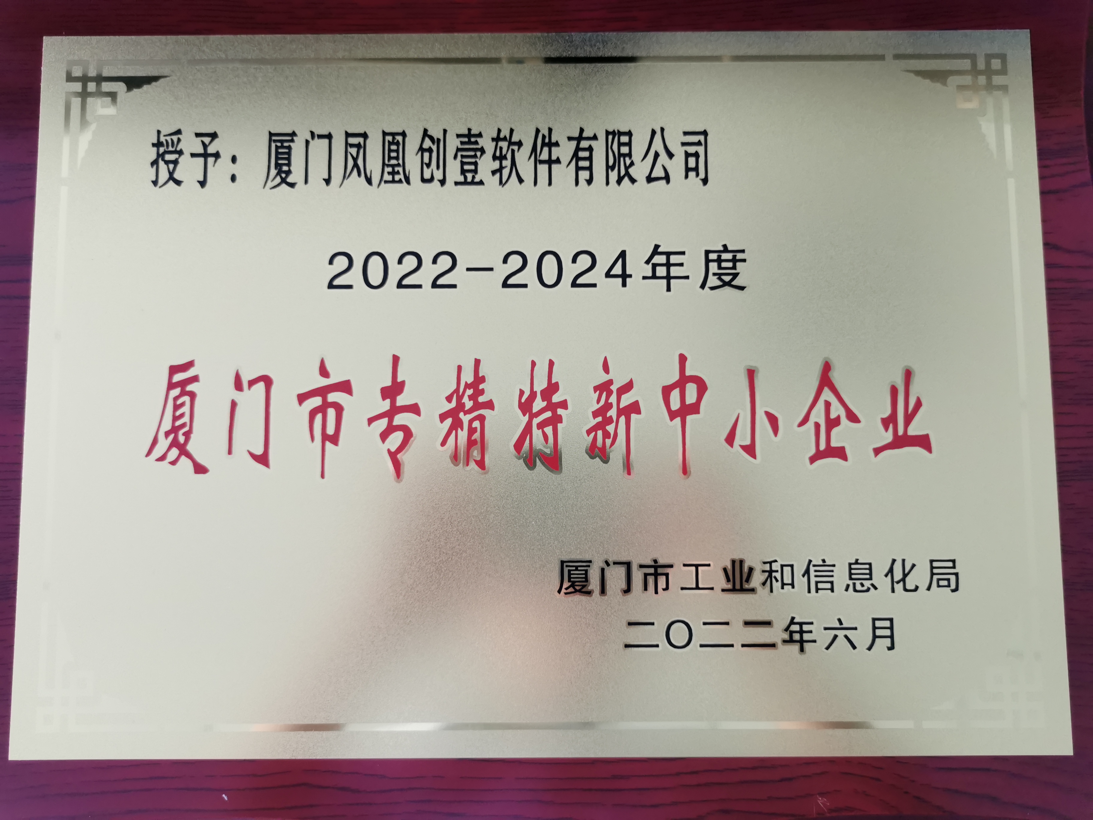 新榮譽(yù)!鳳凰創(chuàng)壹2022年廈門市“專精特新”中小企業(yè)獎(jiǎng)牌到了