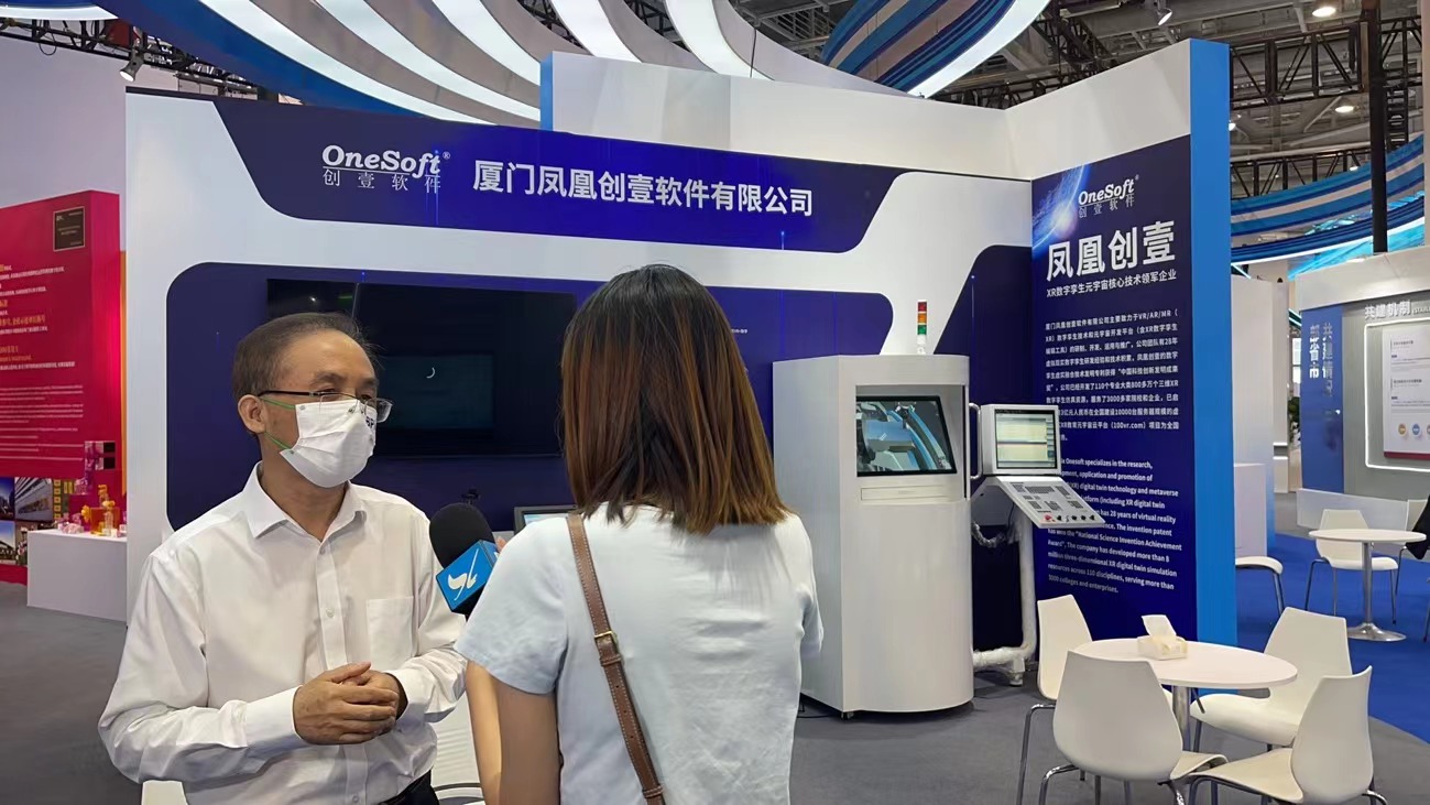 廈門鳳凰創(chuàng)壹總經(jīng)理林慶平博士:我們本次參展的是元宇宙、虛擬現(xiàn)實(shí)、數(shù)字孿生、虛實(shí)融合的產(chǎn)品,希望能夠把完全國(guó)產(chǎn)自主產(chǎn)權(quán),擁有所有源代碼的產(chǎn)品分享給所有金磚國(guó)家。