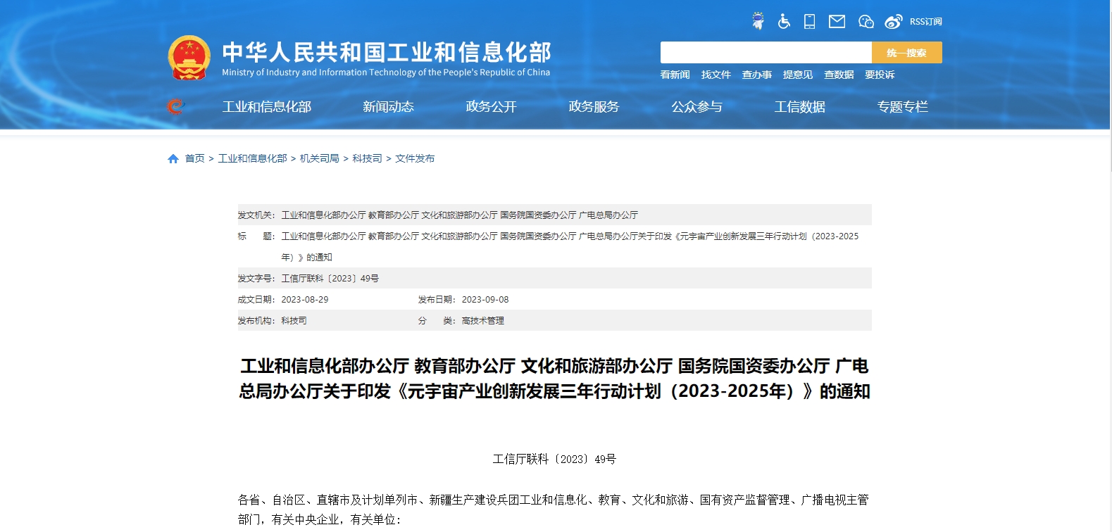 工信部等五部門印發(fā)元宇宙產(chǎn)業(yè)創(chuàng)新發(fā)展三年行動計劃
