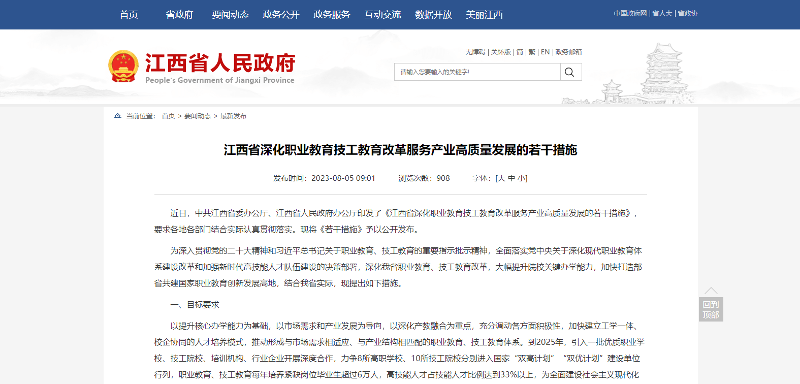江西省發(fā)布深化職業(yè)教育技工教育改革服務(wù)產(chǎn)業(yè)高質(zhì)量發(fā)展的若干措施
