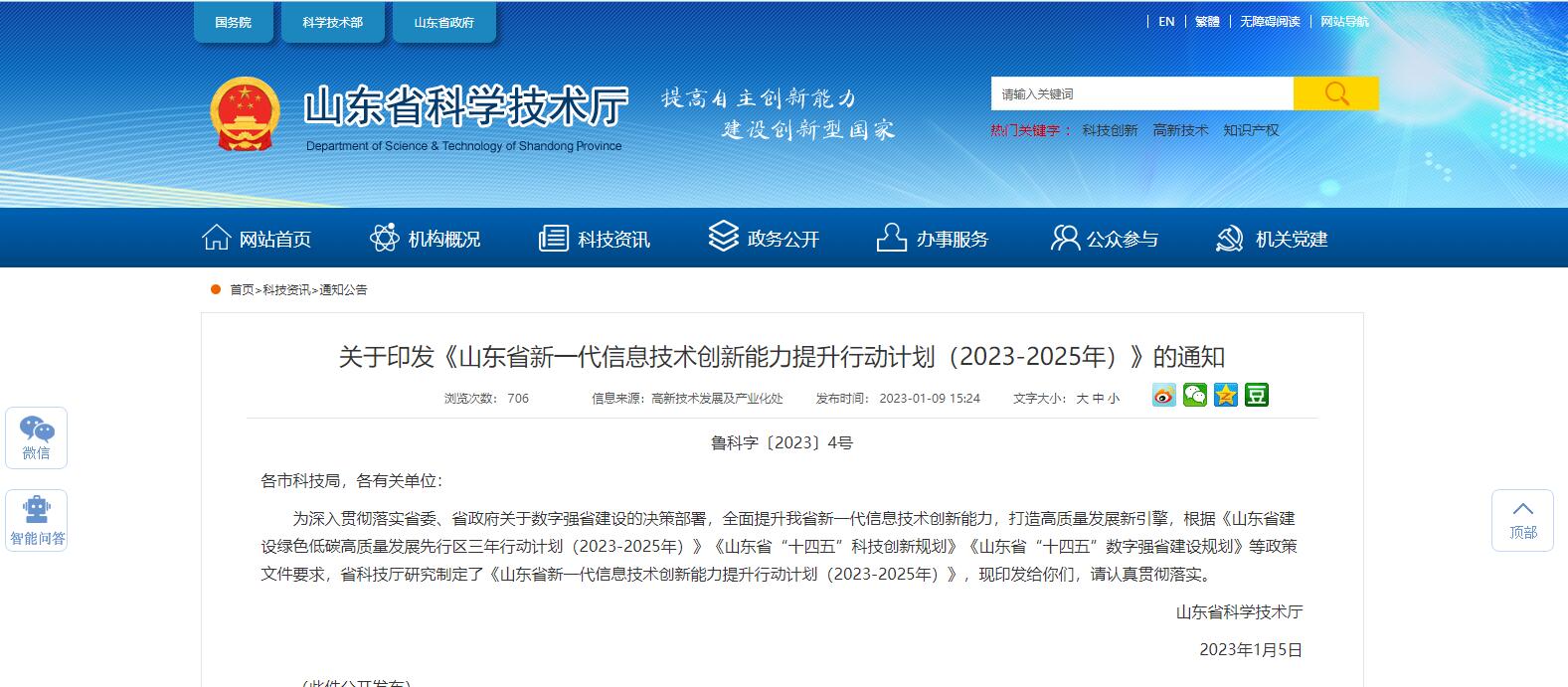 山東省印發(fā)《山東省新一代信息技術(shù)創(chuàng)新能力提升行動計(jì)劃(2023-2025年)》的通知