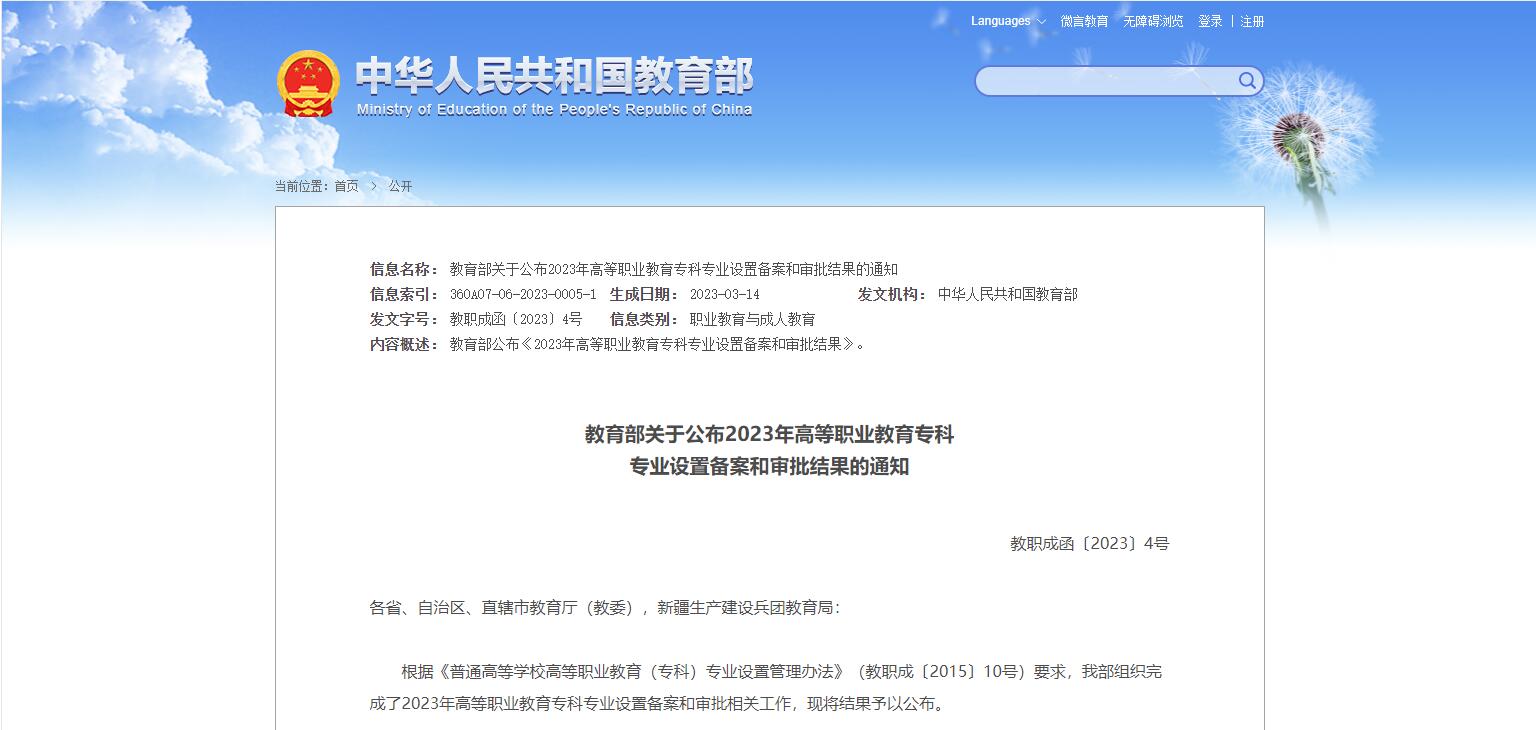 日前,教育部組織完成了2023年高等職業(yè)教育??茖I(yè)設置備案和審批相關工作,并公布結果,經(jīng)省級教育行政部門備案并在教育部匯總的2023年擬招生專業(yè)點共65808個,備案結果可在全國職業(yè)院校專業(yè)設置管理......