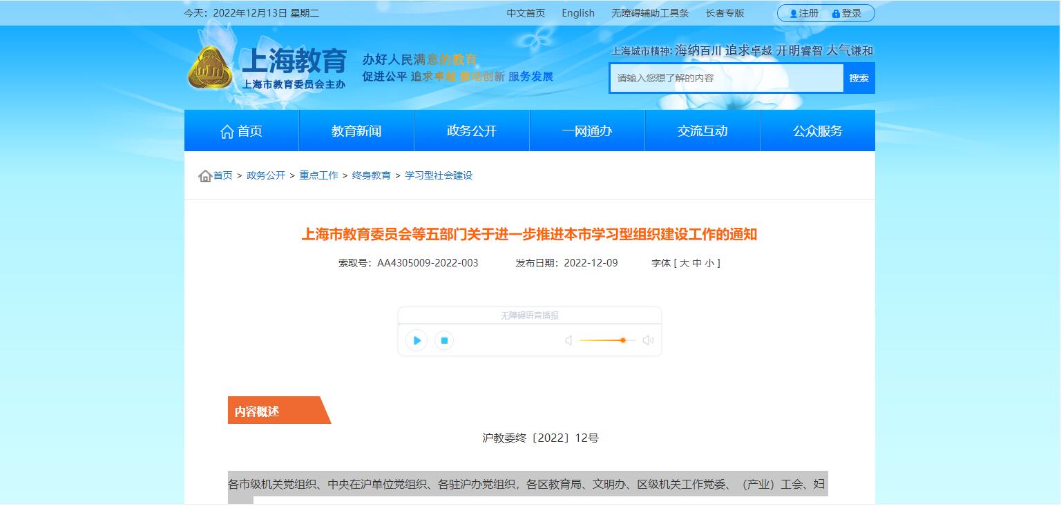 上海市教育委員會等五部門關(guān)于進(jìn)一步推進(jìn)本市學(xué)習(xí)型組織建設(shè)工作的通知