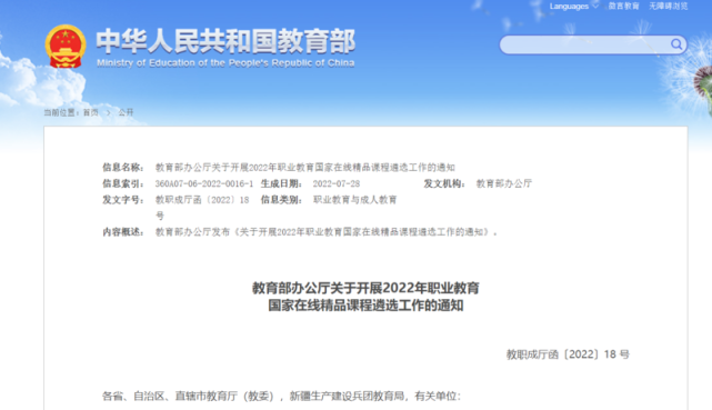 教育部:2022年遴選1000門左右職業(yè)教育國家在線精品課程