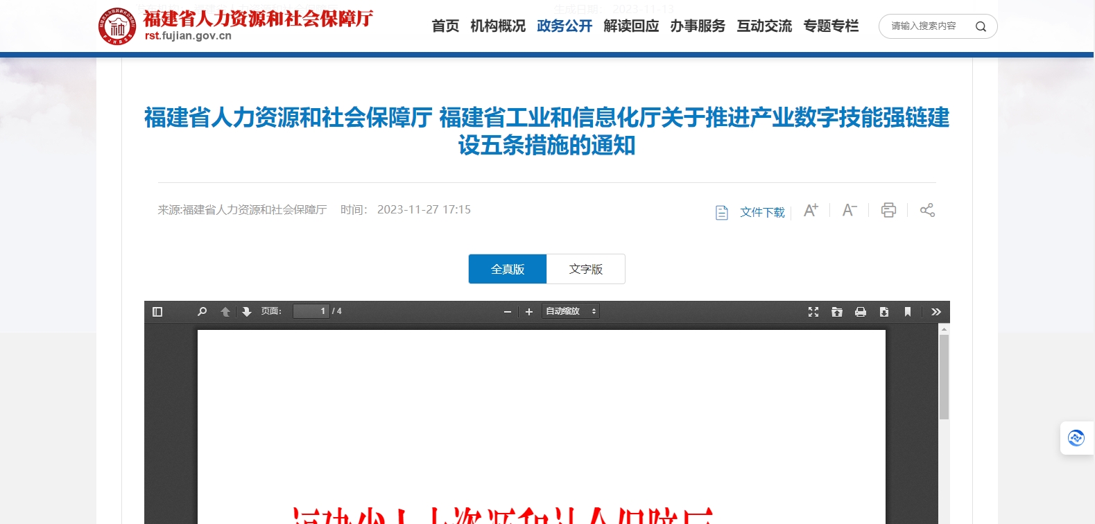 福建省人力資源和社會保障廳 福建省工業(yè)和信息化廳發(fā)布關(guān)于推進產(chǎn)業(yè)數(shù)字技能強鏈建設(shè)五條措施的通知